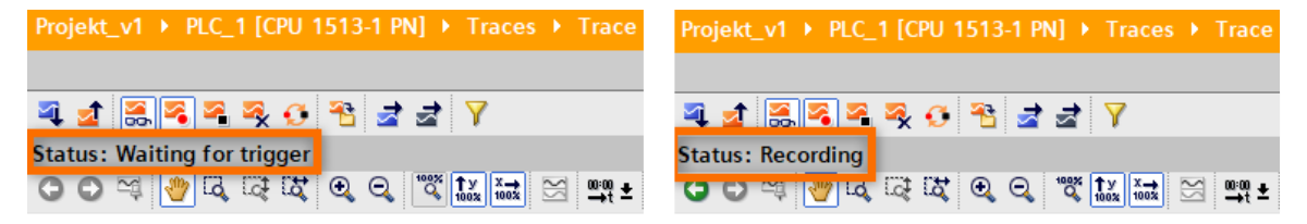 Depending on the selected configuration, the recording will start immediately or there will be status information: Waiting for Trigger.